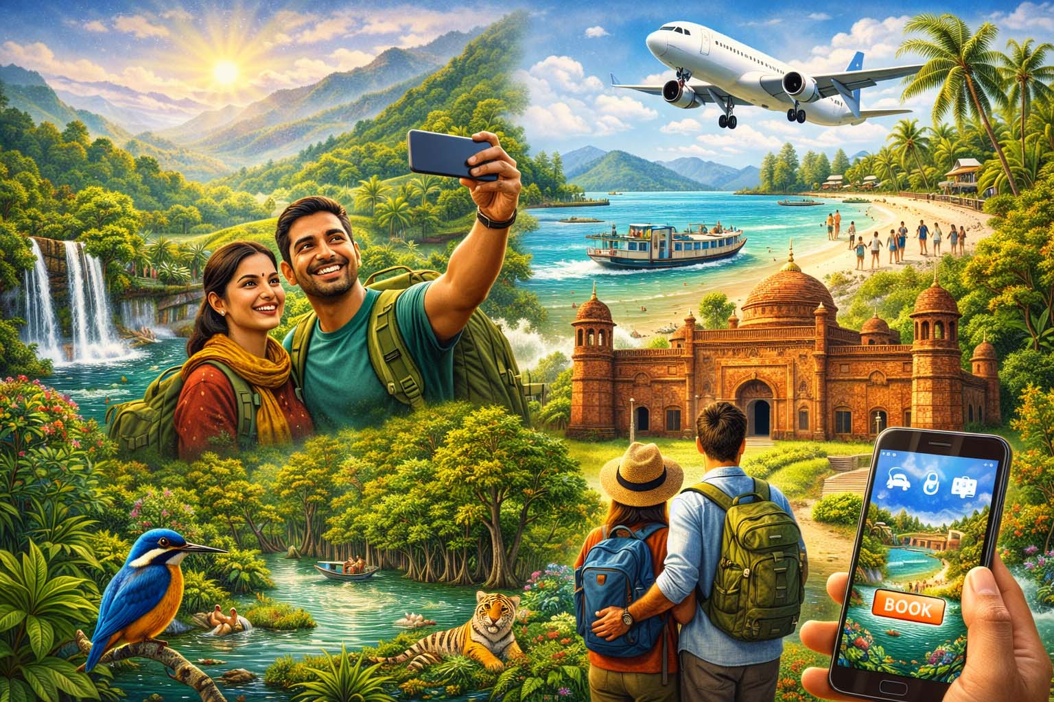 বাংলাদেশের প্রাকৃতিক সৌন্দর্য ভ্রমণপ্রেমীদের জন্য এক অনন্য আকর্ষণ। বিশ্বের দীর্ঘতম সমুদ্র সৈকত Cox’s Bazar, সবুজ পাহাড় ও মেঘের খেলা ভরা Sajek Valley, এবং জীববৈচিত্র্যে সমৃদ্ধ Sundarbans—এসব স্থান দেশি-বিদেশি পর্যটকদের কাছে সমান জনপ্রিয়। এছাড়া ঐতিহাসিক নিদর্শন ও সংস্কৃতির টানে অনেকেই ছুটে যান Paharpur Buddhist Monastery ও Lalbagh Fort-এর মতো স্থানে।